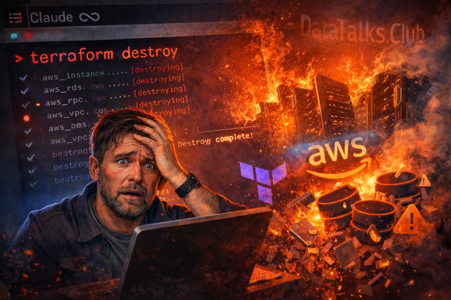 Claude Code executed terraform destroy on the live DataTalks.Club course platform, wiping a VPC, RDS database, ECS cluster, and all snapshots. 1.94 million rows were gone by 11 PM. AWS recovered them 24 hours later.